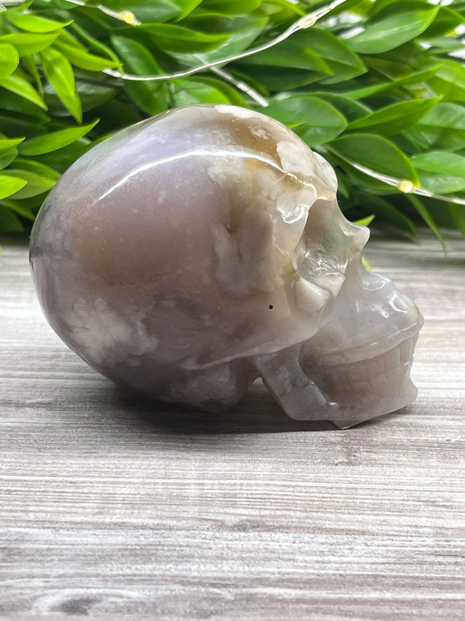 Get lost in the mysterious beauty of this Black Flower Agate Skull. With its intricate floral patterns and striking black hues, this skull is a unique addition to any collection. Perfect for those who appreciate a touch of the dark and whimsical.