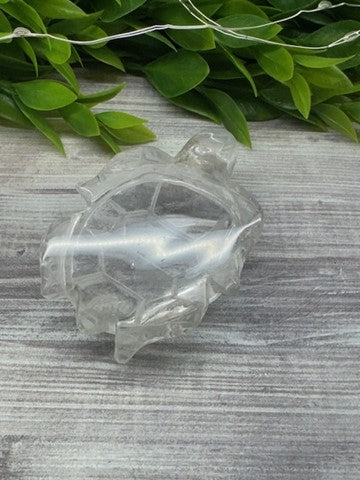Dive into positive vibes with this Clear Quartz Sea Turtle Carving - a unique and playful addition to your decor. The natural healing qualities of clear quartz combined with the symbol of the sea turtle invite balance and harmony into your space. Limited quantities available, so grab yours now!