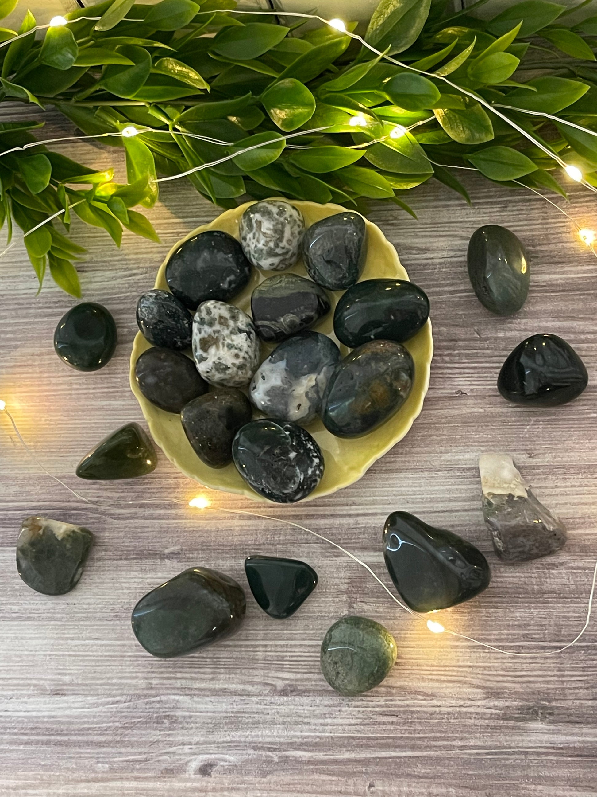 You will receive 1 moss agate tumbled stone. The size, shape and colour may vary between each piece. Your tumbled stone will be intuitively chosen.